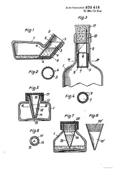 attuale22:12, 3 nov 2013Miniatura della versione delle 22:12, 3 nov 20131 295 × 1 752, 4 pagine (226 KB)Piccardi (discussione | contributi){{PatentInfo |Inventor=Otto Axtmann |Assignee=UHU-Werk H.u.M. Fischer o.H.G. |Country=DE |ApplicationNum=U984 |ApplicationDate=1950-12-01 |PatentNum=835416 |PatentDate=1952-03-31 |PriorityDate=1950-12-01 |Titolo=Einsatzgefaess fuer Hohlbehaelter |Marca...