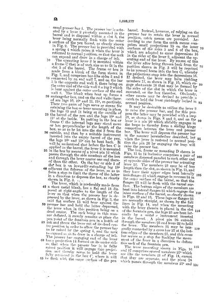 Brevetto per una variante di caricamento a levetta tipica della Waterman, caratterizzata da una gabbia metallica che contiene il meccanismo. Continuazione di richiesta n° 40625 del 1915-07-19.
