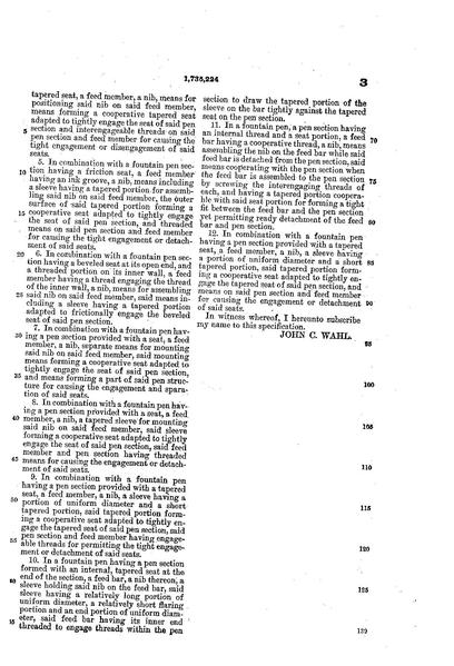 | attuale | 18:19, 26 giu 2012 | 1 159 × 1 704, 4 pagine (230 KB) | Piccardi (discussione | contributi) | {{PatentInfo |Inventor=John C. Wahl |Assignee=The Wahl Company |Country=US |ApplicationNum=737540 |ApplicationDate=1924-09-13 |PatentNum=1735224 |PatentDate=1929-11-12 |PriorityDate=1924-09-13 |Titolo=Fountain-pen assembling |Marca=Eversharp |Descrizio... |