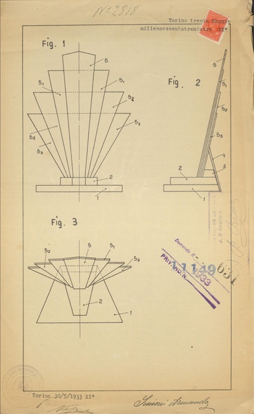 Privativa industriale per un modello di fabbrica della Omas. Testo descrittivo della registrazione: "Sopporto per esposizione di penne stilografiche e simili articoli".