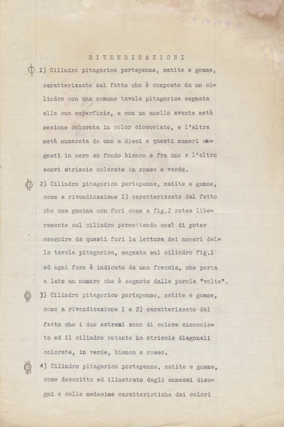 Privativa industriale per un modello di fabbrica. Testo descrittivo della registrazione: "Cilindro porta-penne, matite e gomme, con tavola pitagorica".