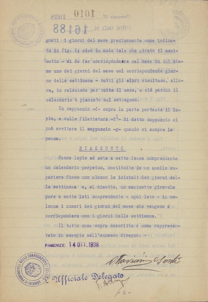 attuale15:56, 5 set 2025Miniatura della versione delle 15:56, 5 set 20254 431 × 6 247, 5 pagine (2,66 MB)Piccardi (discussione | contributi)== Dettagli == {{InfoModello |Numero=16188 |Data=1939-07-27 |Richiesto=1938-10-15 |Titolare=Santi Ottaviani |Tipo=di fabbrica |Titolo=Penna-lapis tascabile con calendario perpetuo |Domanda=1010 |Ufficio=Firenze |Fonte=[https://tecadigitaleacs.cultura.gov.it/media/ricercadl?rictree=MINISTERO+DELL%27INDUSTRIA%2c+DEL+COMMERCIO+E+DELL%27ARTIGIANATO%2fUFFICIO+ITALIANO+BREVETTI+E+MARCHI%2fArchivio+generale%2fModelli%2fBrevetti+dal+n.+1+al+n.+100.000 Archivio Centrale dallo Stato] }}